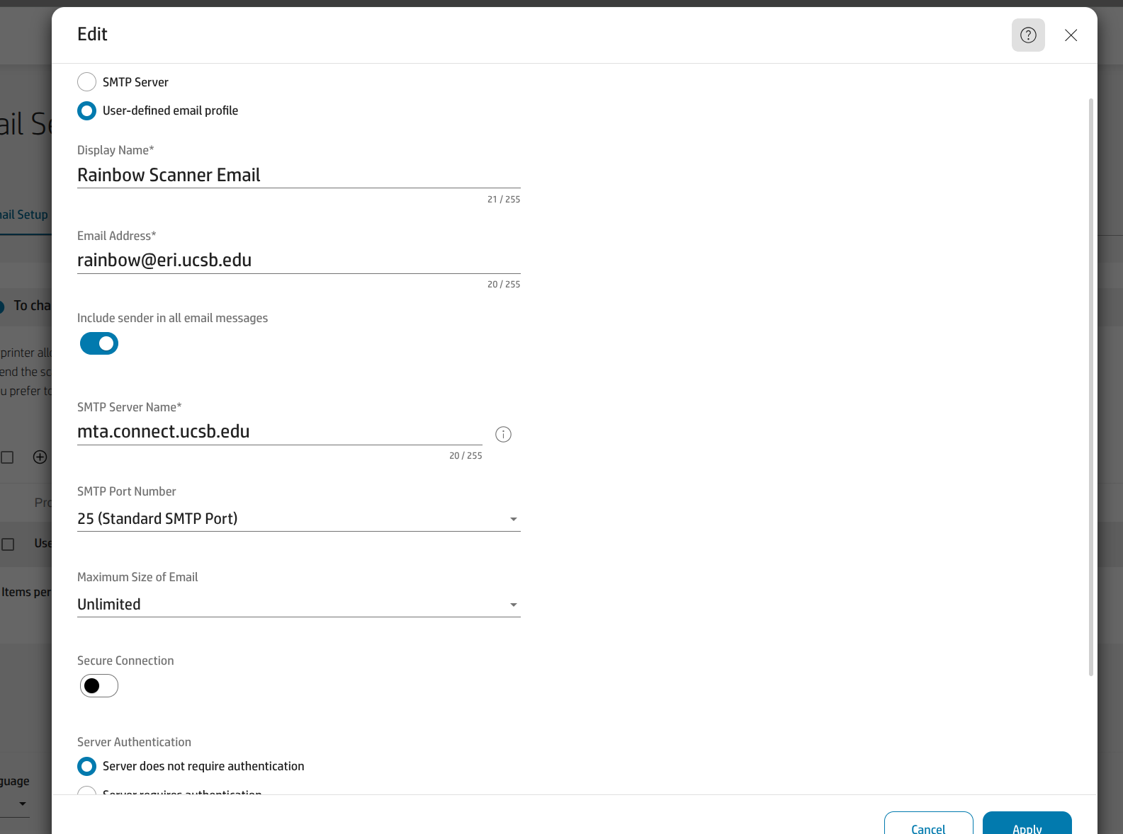 - https://www.connect.ucsb.edu/messaging-collaboration-services/mta-devices#:~:text=SMTP%20server%20address:%20mta.connect,SSL/TLS:%20No